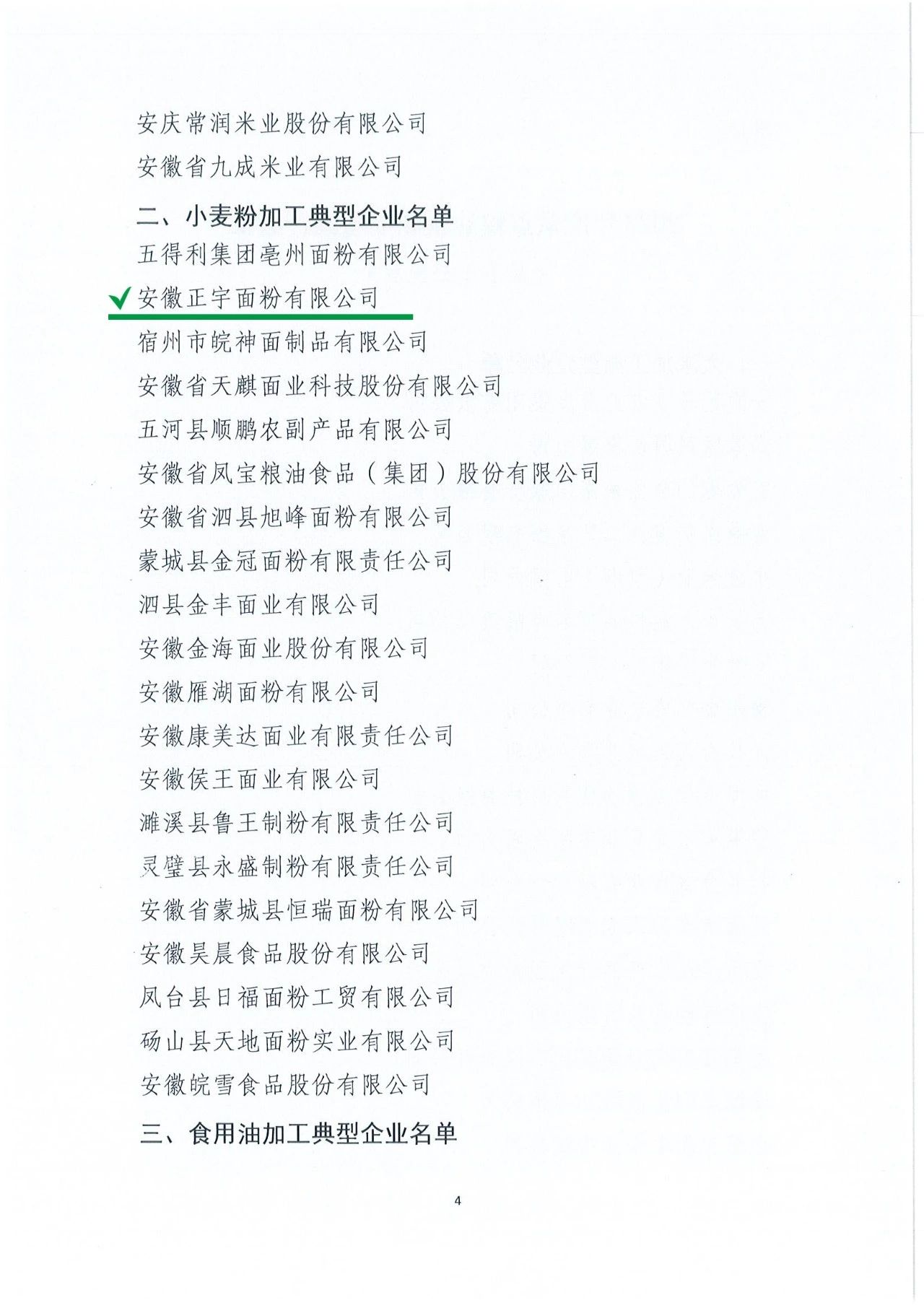2024年12月15日,安徽省糧食行業(yè)協(xié)會下發(fā)《關(guān)于公布 2024年重點(diǎn)糧油企業(yè)專項(xiàng)調(diào)查結(jié)果的通知》。安徽正宇集團(tuán)旗下正宇面業(yè)榮獲安徽省“小麥粉加工典型企業(yè)”榮譽(yù)稱號
